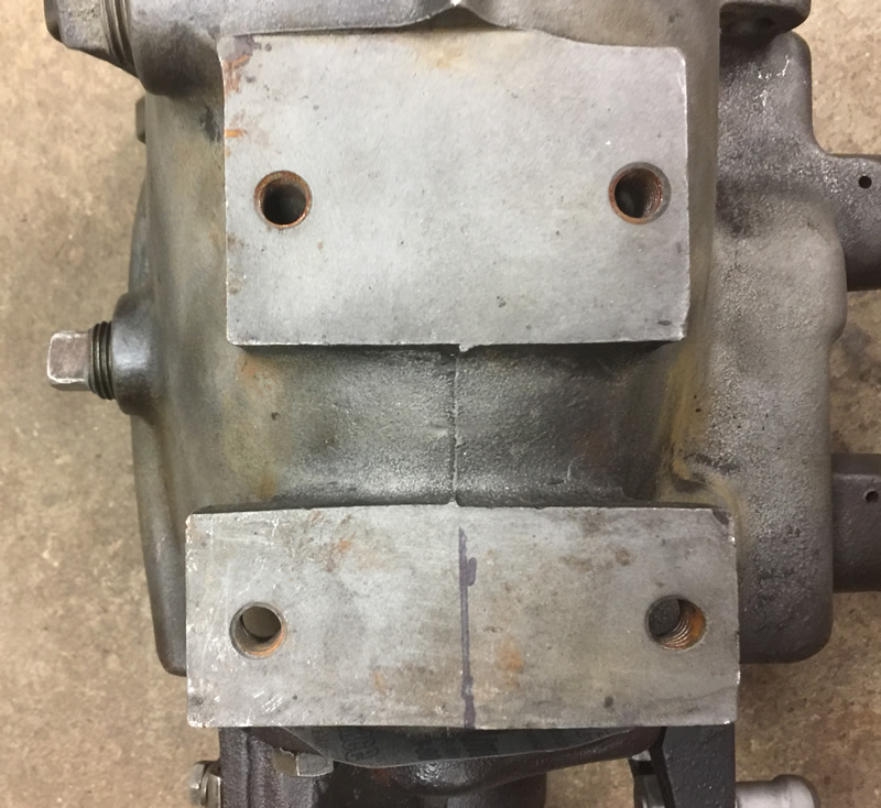 I searched for another DJ rubber mount, but i couldn’t find one (do the 2WD T-96 wagons/trucks use this?). So, I decided to use a T-90 mount and build an adapter to connect the T-96 to it. Here’s the bottom of the transmission (formerly Rusty’s). See the bottom right hole? It was damaged at some point, as the hole is oblong: