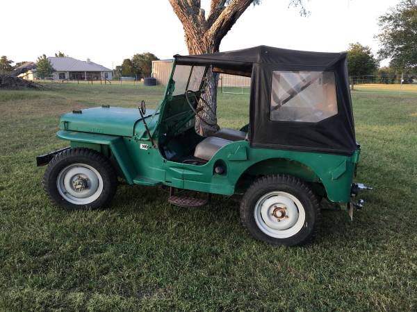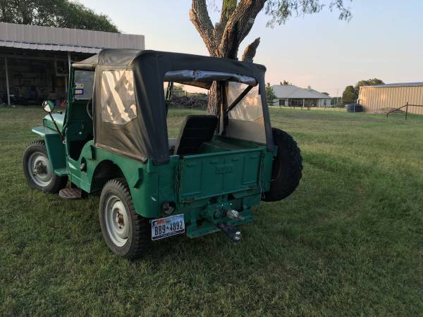 “CJ2A with working PTO, column shift, rebuild trans, soft top, spare tire rack and extra rims! Runs great!”