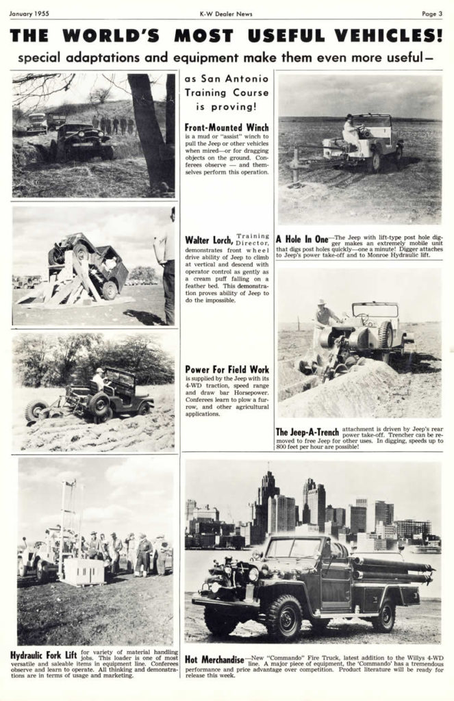 This page was published in the January 1955 issue of Kaiser Willys Dealer News.