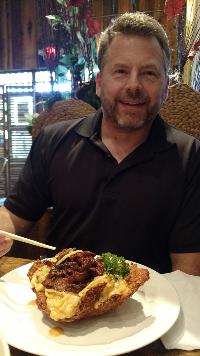 I went with the Donkatsu with spicy noodles and spicy pork. The Donkatsu, a pounded-thin breaded and fried pork cutlet was actually fried into the shape of a bowl. Into the bowl the chef dropped spicy, creamy noodles topped with small strips of spicy, tender pork. It was all excellent.
