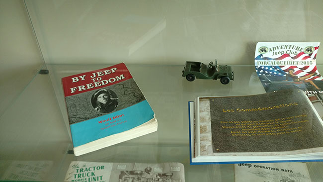 There were also some toy jeeps, knick-knacks, and brochures. I was surprised to see a rare copy of Wolff Blint’s great book “By Jeep to Freedom“, one of my favorite jeep adventure books. It’s filled with amazing details from Wolff’s experiences in WWII.