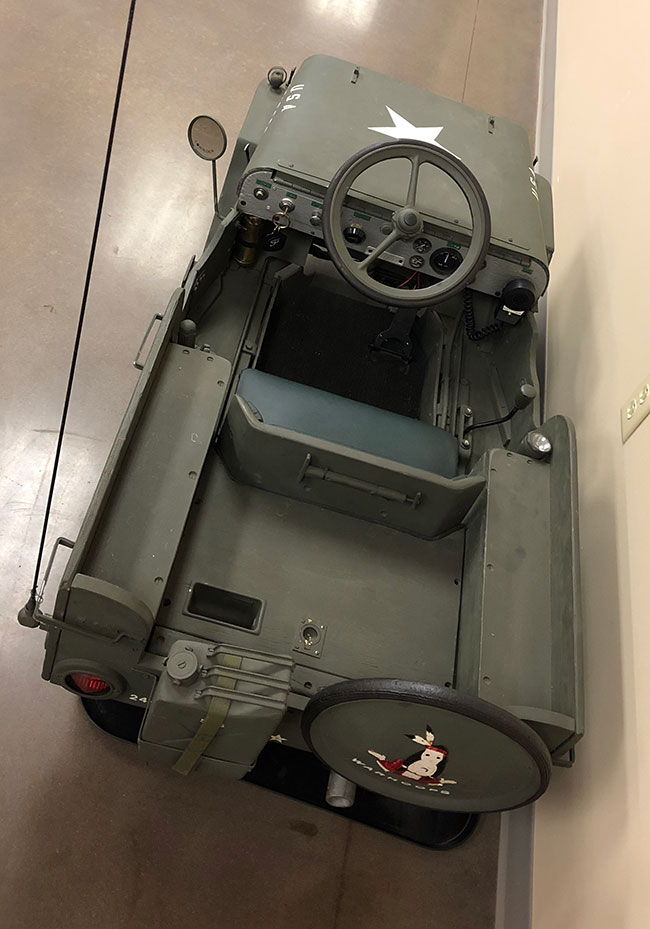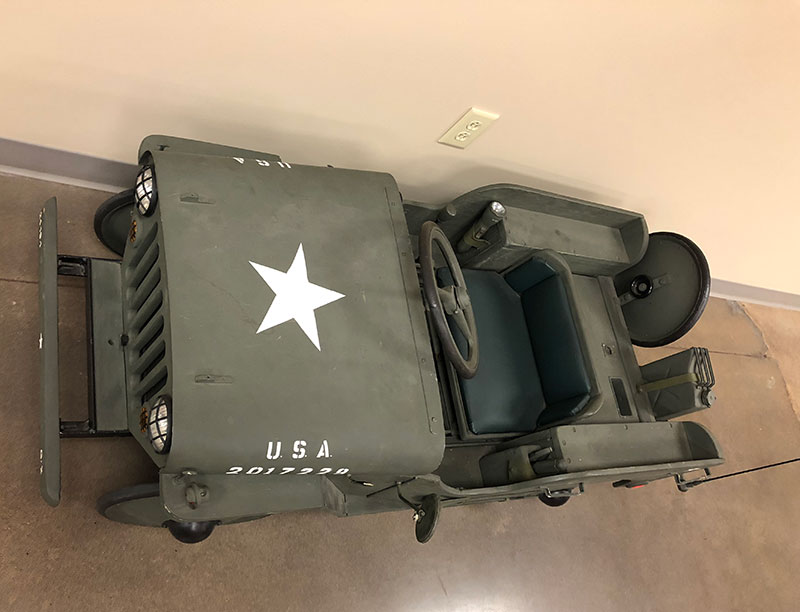 One of the more unique items in the collection was a half-sized jeep. I was surprised to see it was motorized and couldn’t recall seeing one before. Dave Logan later explained to me via email that it was a “Sidewalk Jeep”, something I’d posted a few years ago.