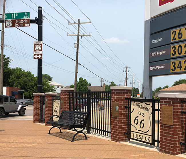 For example, when we reached Tulsa, the road was pretty easy to follow, but there were no signs or indication to the casual driver that a Route 66 Interpretive Plaza had been built in Tulsa at the east end of town. I wouldn’t had known about it if not for Roadside America.