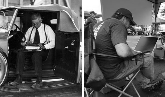 In fact, between our glasses and the hardware in our laps, you can barely tell us apart … (Hint: I’m the one with the ball cap). I could tell right away he liked me. After all, he never met a man he didn’t like, or so he said once.