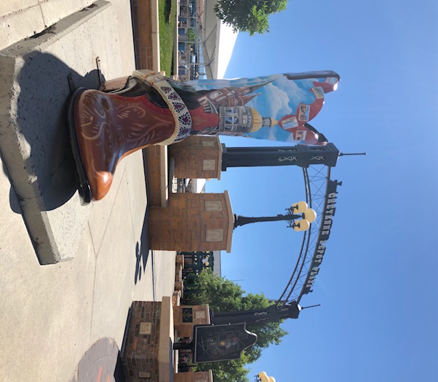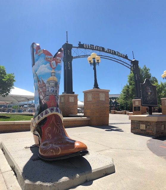 We followed Highway 30, aka the Old Lincoln Highway, through the center of downtown. Along the way we saw some fantastic old motel signs in excellent shape. It’s the kind of scenery we’d expected to see more of along Route 66. Once downtown, the center of Cheyenne seemed vibrant and interesting. The downtown square contained oversize boots painted in mural-like ways. The railway station is now a museum and a brew pub.