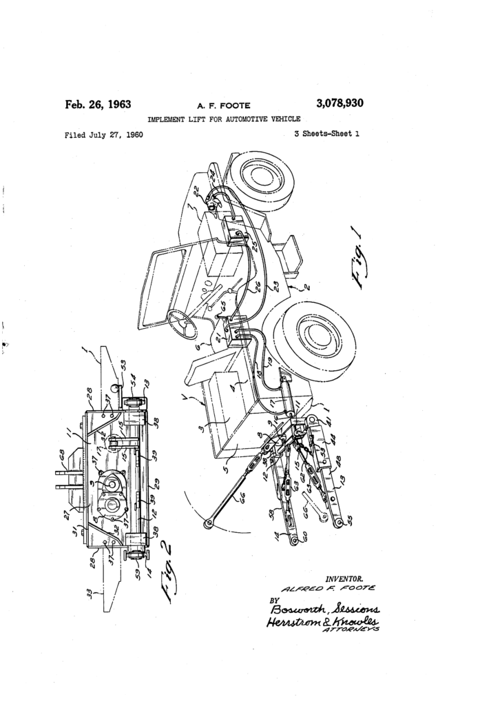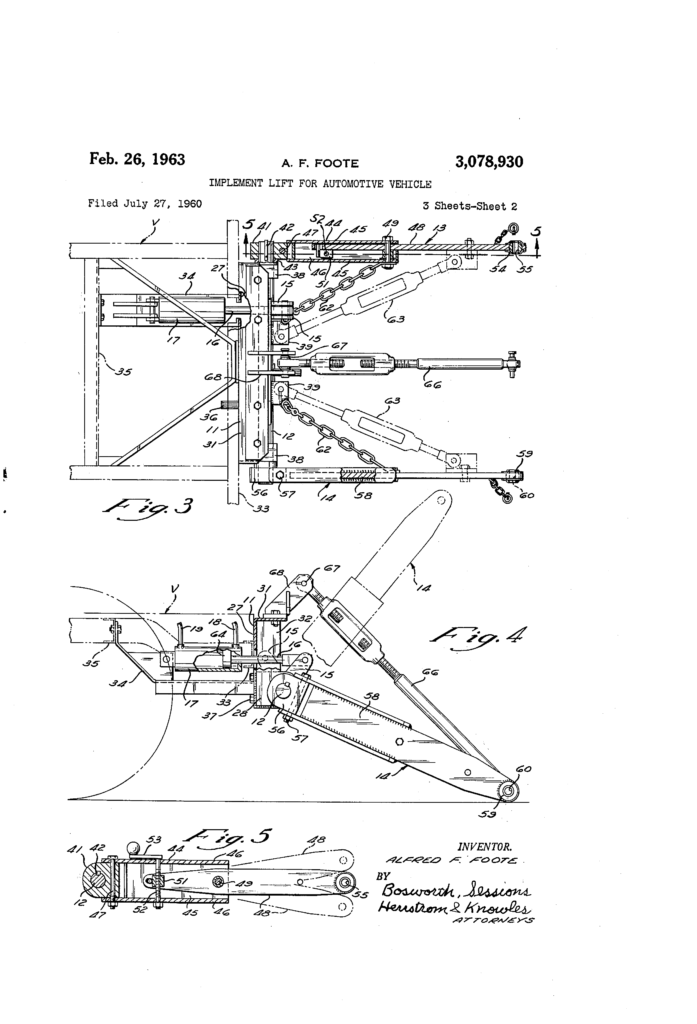 As part of his patent, Foote references both the Monroe and the Love designs. The patent for the lift was granted on Feb. 26, 1963.