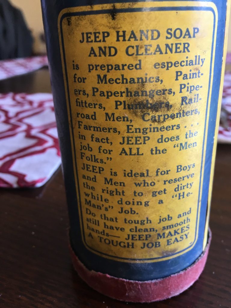 Chris snagged this unusual item off of eBay. I’d really like to know when this was produced, because some of the font details are fairly close to the look of the Jeep font in 1945.