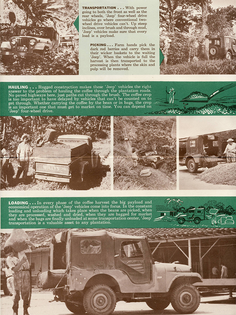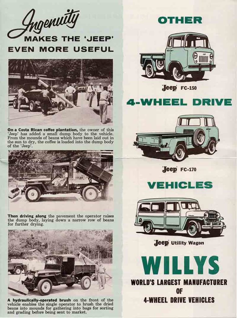 This August of 1957 Coffee and ‘Jeep’ Vehicles brochure was one I didn’t know existed until it appeared on eBay two weeks ago. That CJ-2A dump jeep is pretty interesting.