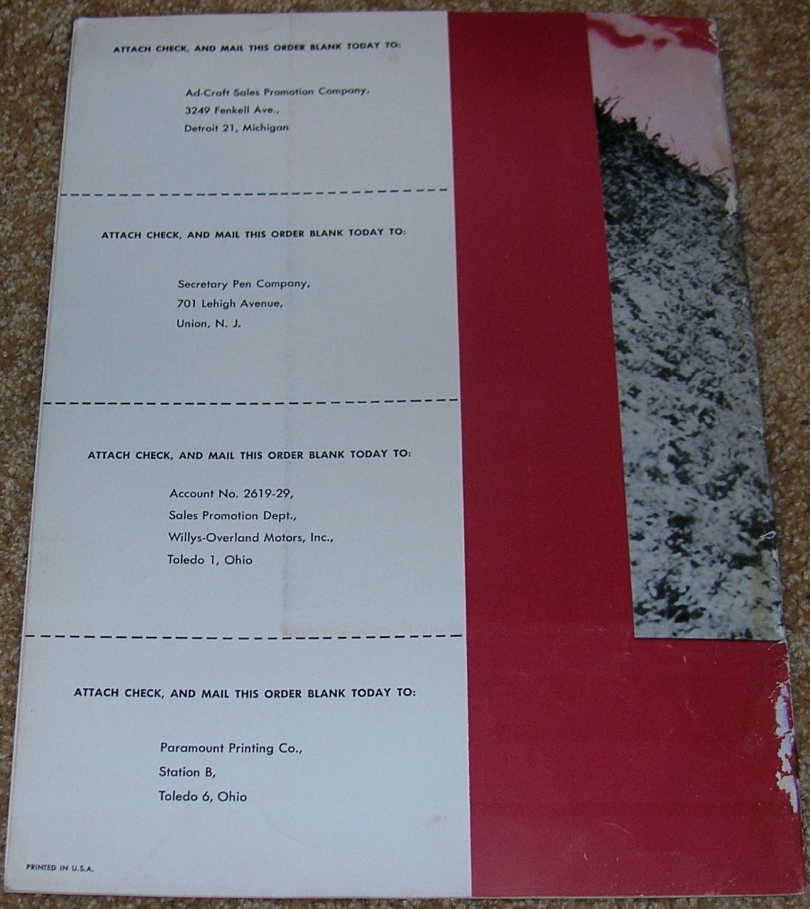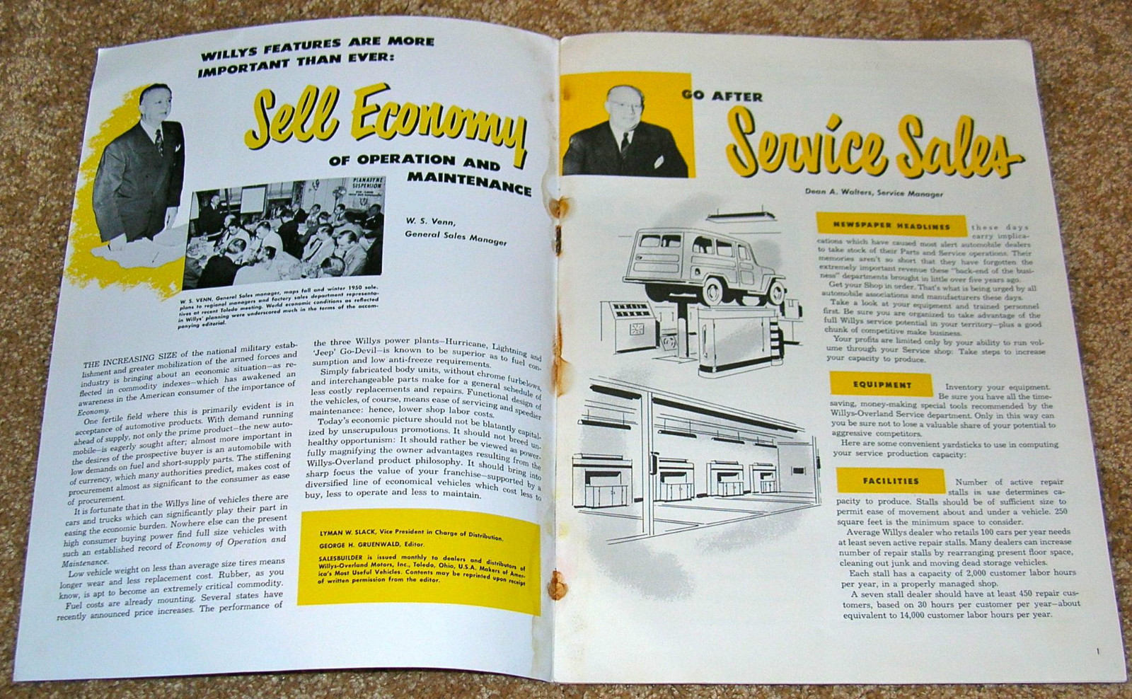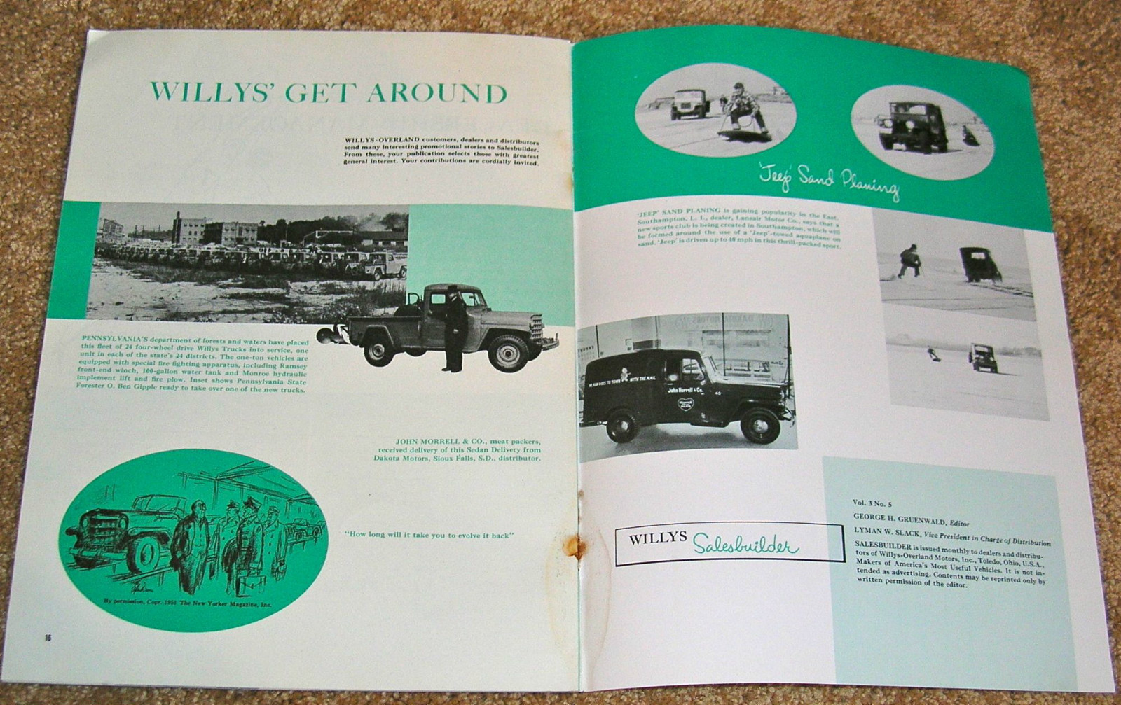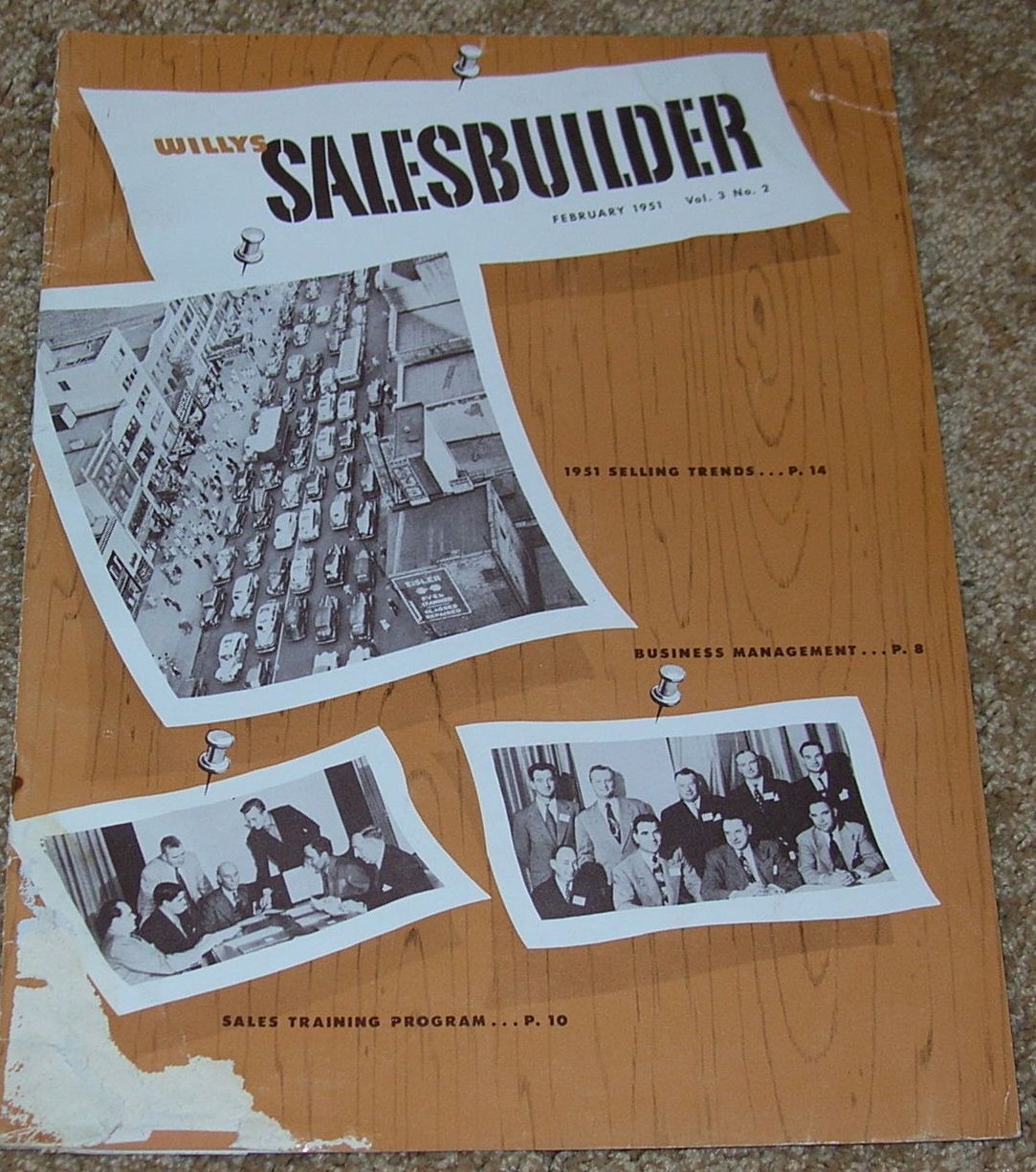 Willys-Overland began publishing the Salesbuilder magazines in July of 1948 with the announcement of the Jeepster. The Salesbuilder supplanted the W-O Sales News magazine. According to a small blurb on Google (I can’t read the whole reference), the Salesbuilder was part fo the effort to push the Jeepster.