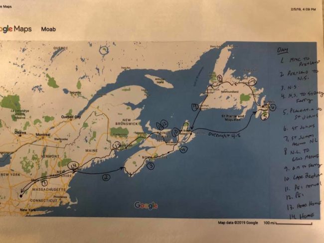 This is a rough estimate of the Newfoundland trip. I don’t know what the final route will be.