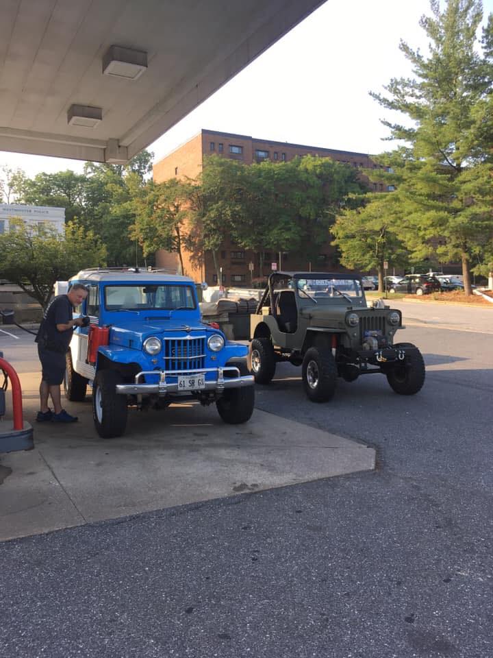 Russ (at the wagon) and Joe Bee’s CJ-3B are filling up for their meeting with the group.