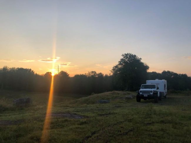 They began the day bright and early, as this photo shows. I think we all know that it’s the Gladiator that makes the scene so impressive. They had roughly 8 hours of driving ahead of them, so, literally, they were both mainly driving and Maine’ly driving.