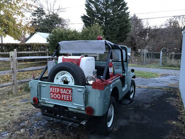 “1962 Willys Jeep CJ5 Dept. of Agriculture Forest Service Brush Truck 6. I do not have documented proof that this was an original fire Jeep but if it wasn’t someone went thru a lot of trouble to make it one. Starts, runs, stops and drives well. Prior to my ownership it appears to have been re-wired and a new generator was installed.