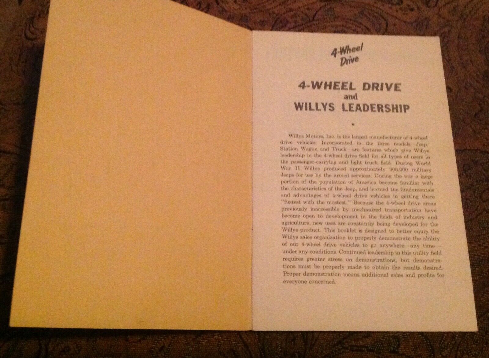 I would guess this is an early 1952 booklet. The “W” shown on the back likely puts it after the big push in 1952 to shift towards the Willys marketing umbrella, but not late enough to list the 1953 475 model truck.