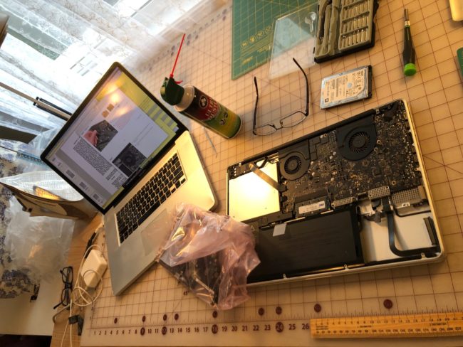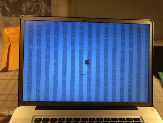 UPDATE: I *think* I’ve found a workaround solution, as my main laptop is working once again. If you have 2011 Mac and have vertical lines (as seen below), you likely have a video card problem (aka the AMD graphics chip has failed). There’s a software strategy for working around that which you can find here.