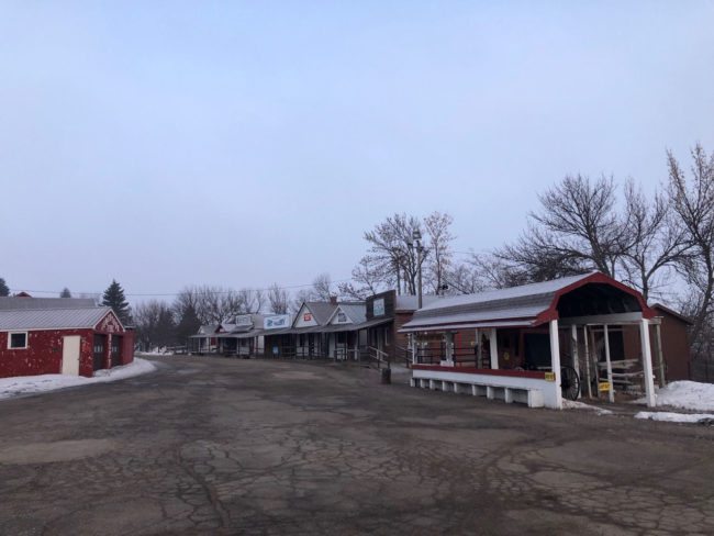 It turned out, there was a whole frontier town that lined the street leading up to the bison! The cold, quiet morning and some low lying clouds gave the old, empty frontier town an eerie feeling. It was cool.