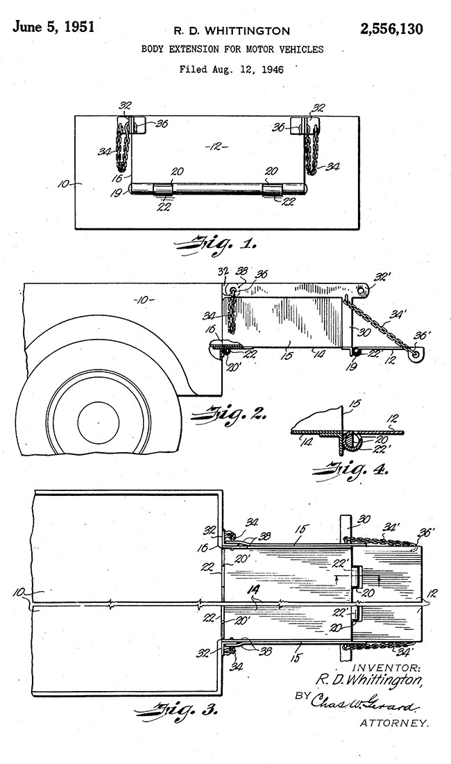 PATENT DESCRIPTION: June 5, 1951 R. D. WHITTINGTON BODY EXTENSION FOR MOTOR VEHICLES Filed Aug. 12, 1946 A TTORNEY.