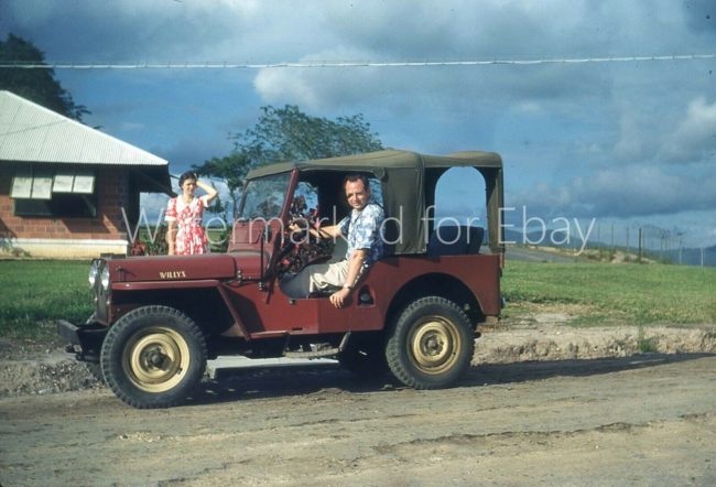 “1 Original slide as shown. K5 013 Amazing old car JEEP WILLYS Caripito Monagas Venezuela 1951 Red Border Kodachrome”