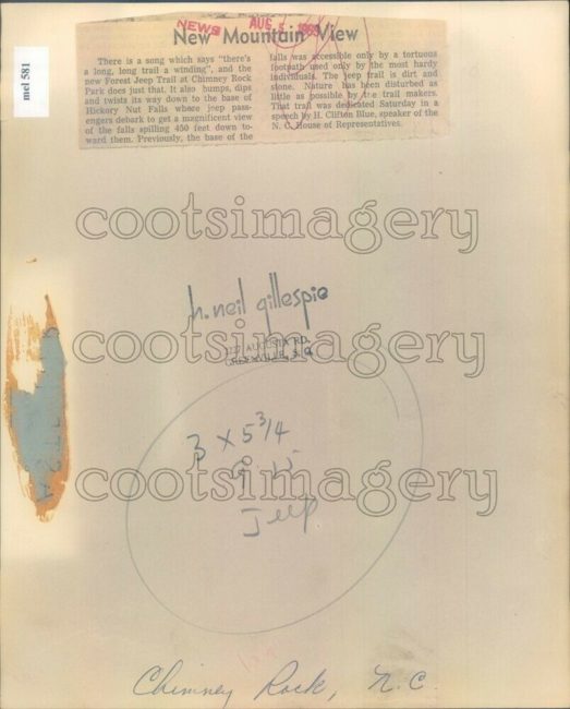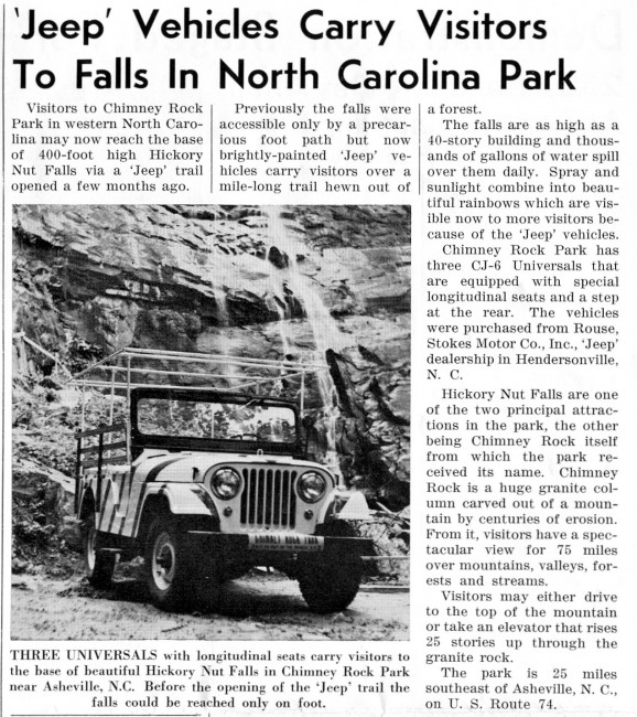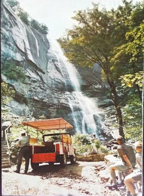There’s another press photo that is also available on eBay which shows a tour jeep at Hickory Nut Falls, a stop on the way to Chimney Rock: