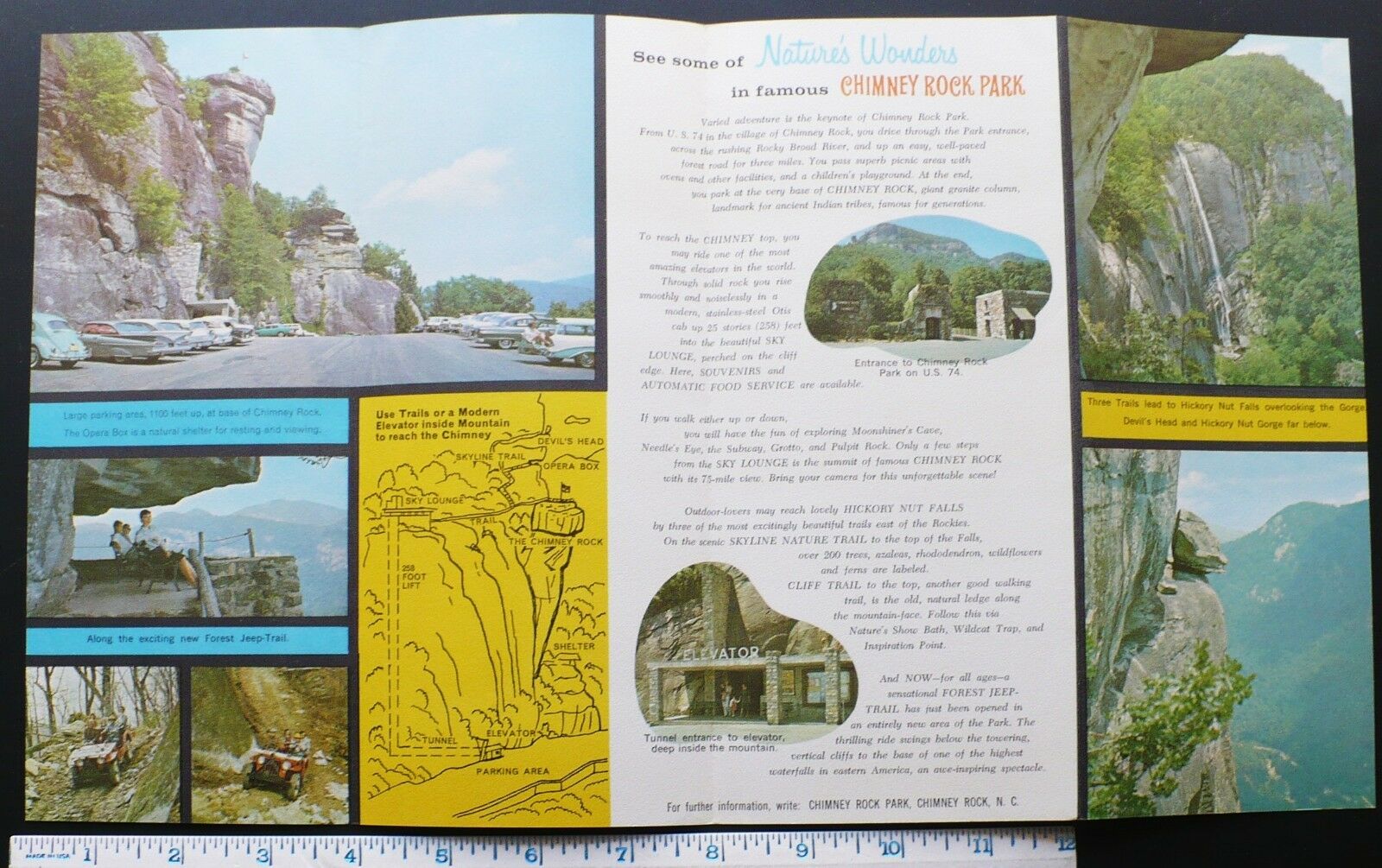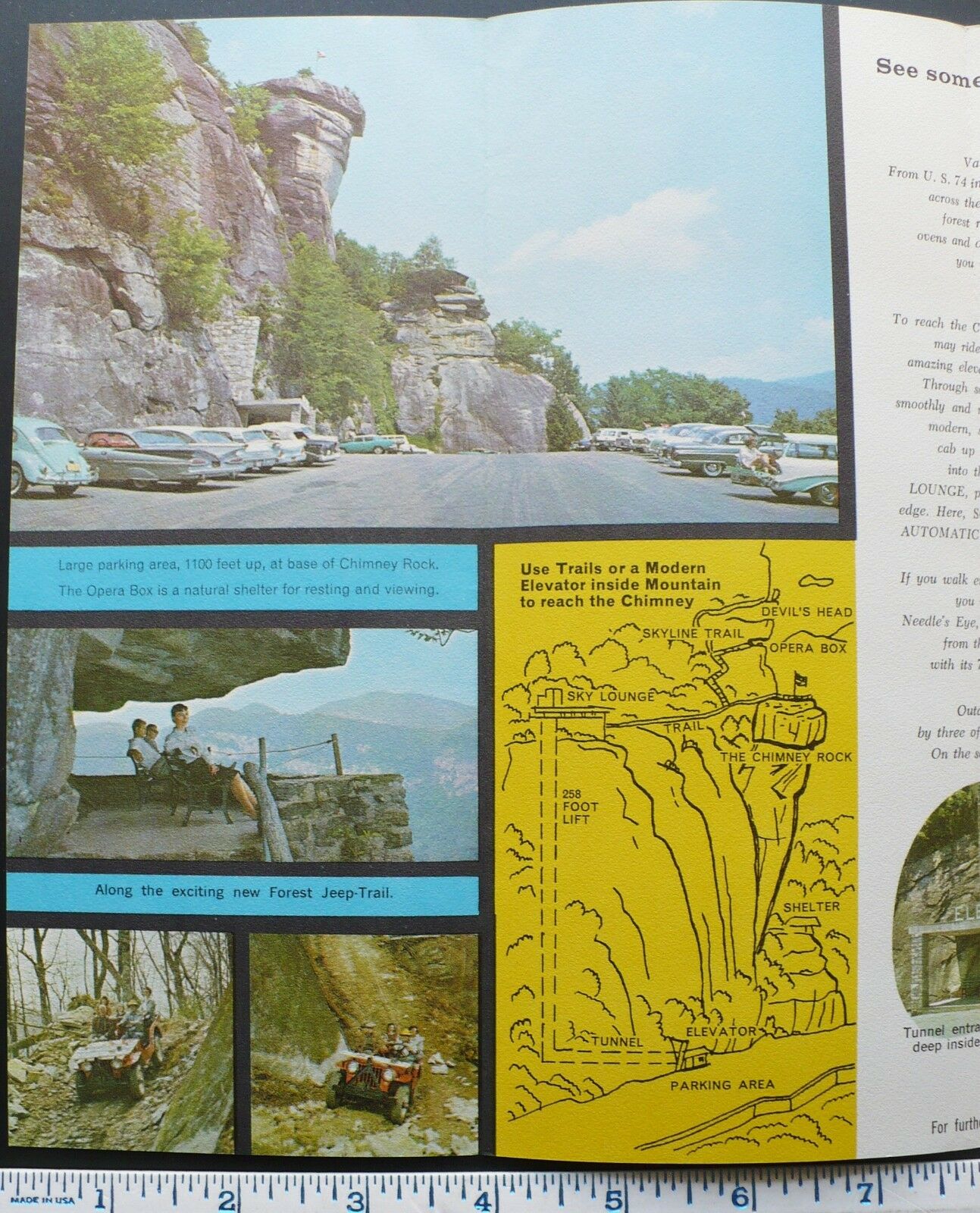 A Chimney Rock brochure and guide pamphlet from the 1960s also shows an image of the tour jeep and two images of what appears to be a private jeep making the climb:
