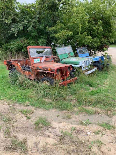 “Advertising for a friend who has 5 1947 Willys Jeeps for sale([hidden information]).Used to restore them but now retiring from that. Green one in the shop in best shape and he is asking $5000/ best offer. Three in the weeds are $3000 or best offer for all of them. Orange one with plow $1400/ best offer”