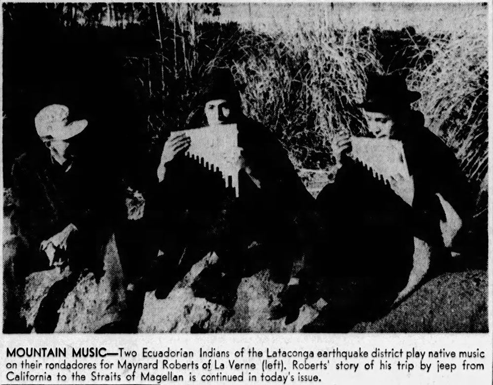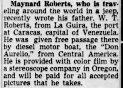 In 1948, 34 year-old Maynard Roberts, from La Verne, California, traveled south into Mexico and spent the next 18 months exploring Central and South American. He wrote a series of articles for the Pomona Progress Bulletin detailing his trip. He’d hoped to write a book, but I have been unable to locate one. If he didn’t, it’s too bad, because I think he was a very good writer.