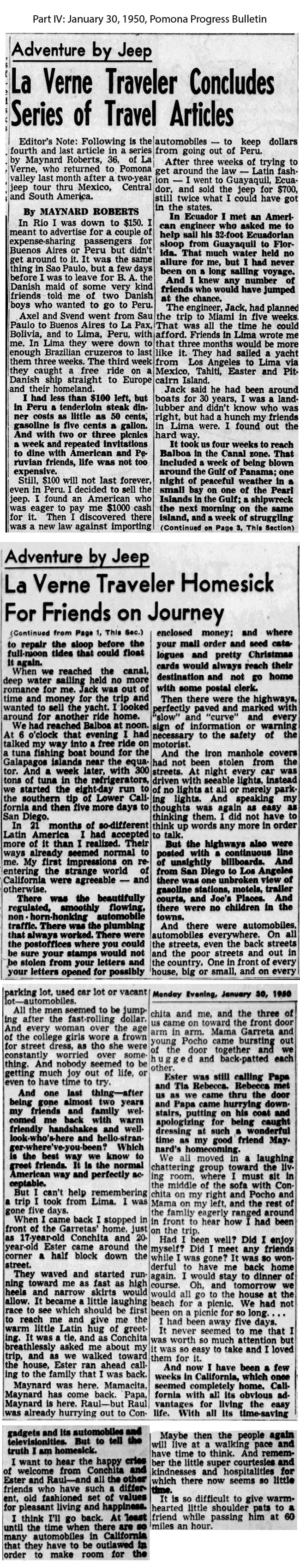 Part IV: This is the final installment of Maynard’s adventure. It appeared in the January 30, 1950, issue of the Pomona Progress Bulletin.