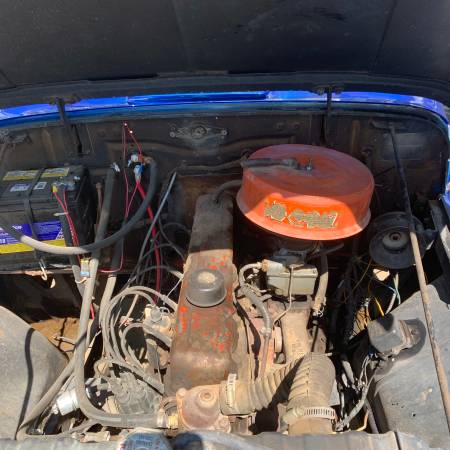 “New interior, manual transmission, straight six Chevy motor. Good body, starts up and drives, nice wheels and tires. 3-speed with over-drive transmission, twin stick 4wd. $8,500