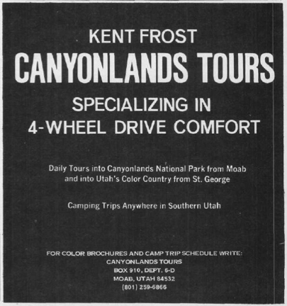 And here is an example of the type of advertising Kent did for his 4wd tour business. This is an ad placed in the 1976 issue of Desert Magazine.