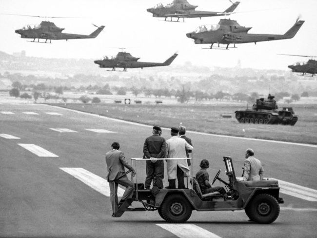 President Jimmy Carter, right, and West German Chancellor Helmut Schmidt stand in jeep as they watch joint U.S. and West German forces air mobile training at nearby U.S. Erbenheim airbase in Germany on July 15, 1978, where Center reviewed a parade of U.S. and West German troops. (AP Photo) M-151 https://www.theatlantic.com/photo/2015/11/The-Jeep-A-Visual-History-Americas-Mighty-Midget/415755/