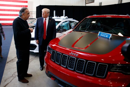 #45 Donald Trump: Donald Trump was another challenge, but a pic finally popped up with him in front of a Jeep Grand Cherokee (Trailhawk?):