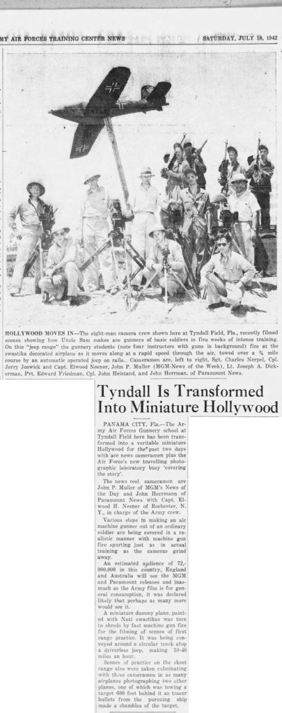 Tyndall Field in Florida is credited with creating the first “jeep range”, a place where jeeps carried objects for gunnery practice. Here are a few pics and articles about “jeep ranges”.