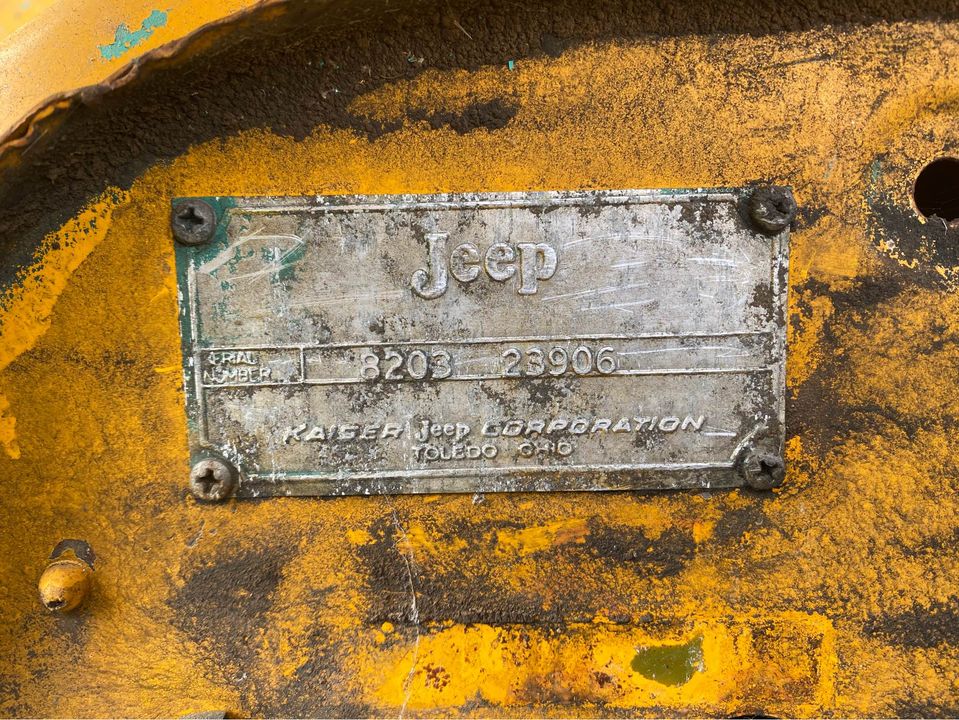 This Jeep, 8203 23906, with RHD and AT, is the sister to 8202 23905, which was originally bought by a city in NJ for use as a mosquito sprayer. It was for sale for a long time before being purchased by a firefighter in Los Angeles and converted to LHD, and detailed as a USN DJ3A. 23905, was originally Transport Yellow, just like this one and it had a half cab. 23906 has the model number 8203, which in the past has been indicative of a Dispatcher with full hardtop and having one or both rear side windows. With all the yellow paint, it may have been a mail delivery Jeep for a contract mail man, and painted yellow at the factory.