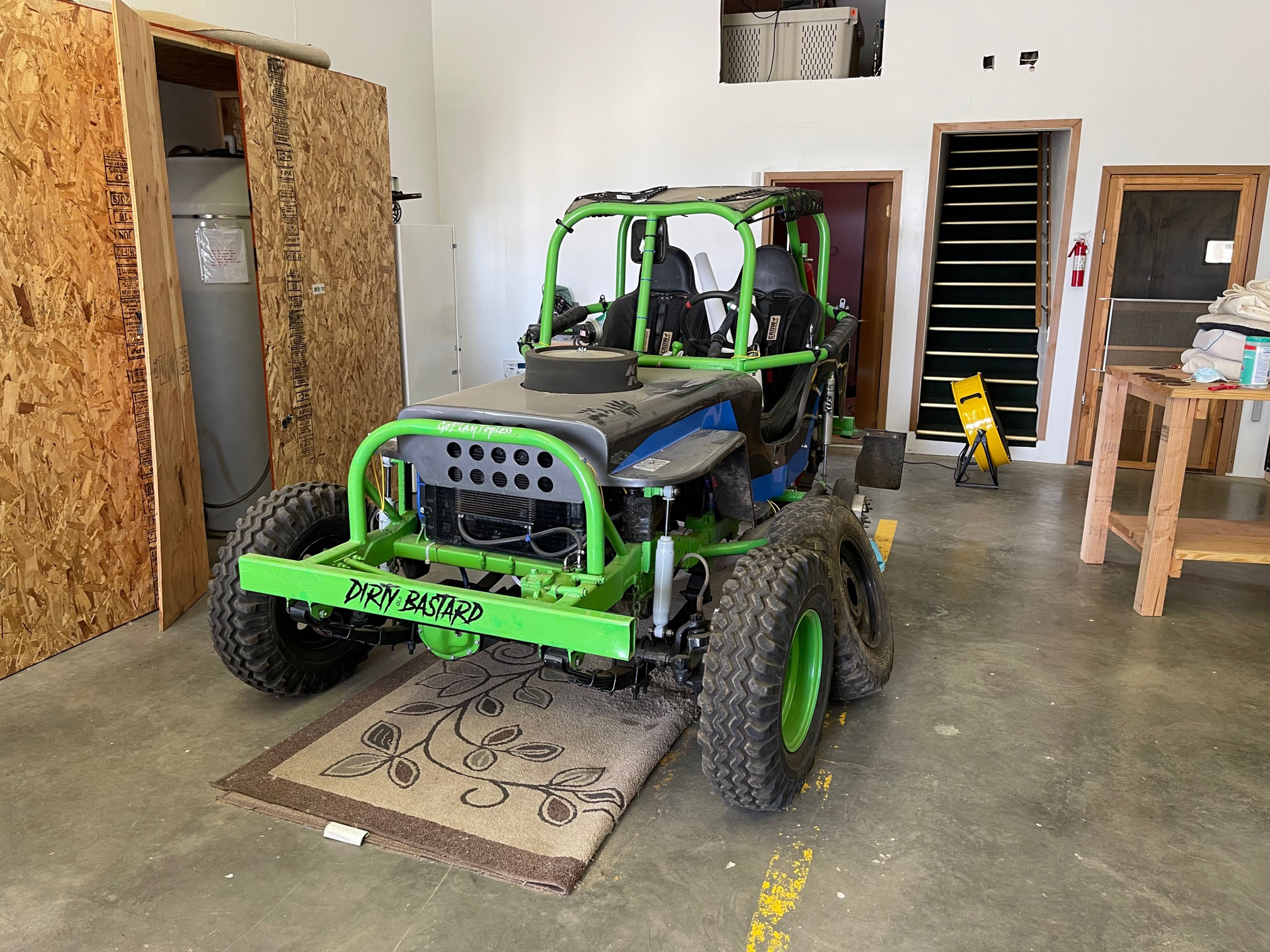 The race jeep is ready to receive some attention now that it is freed from stuff.