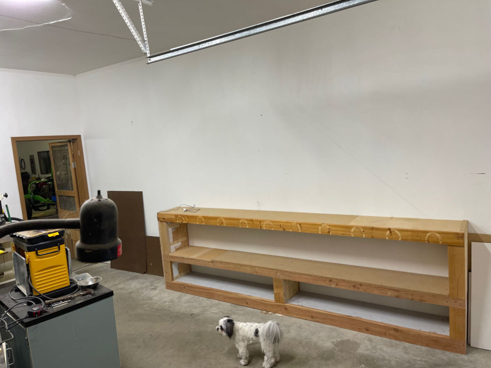 Sorry for the lack of updates this week. Ann’s still recovering from gallbladder surgery, but she’s been well enough to keep an eye on the dogs during the day. So, I’ve been busy this week rebuilding the small shop (in back of the big shop … roughly 25′ x 20′). It was a dark, dingy room with one fluorescent light that didn’t work.