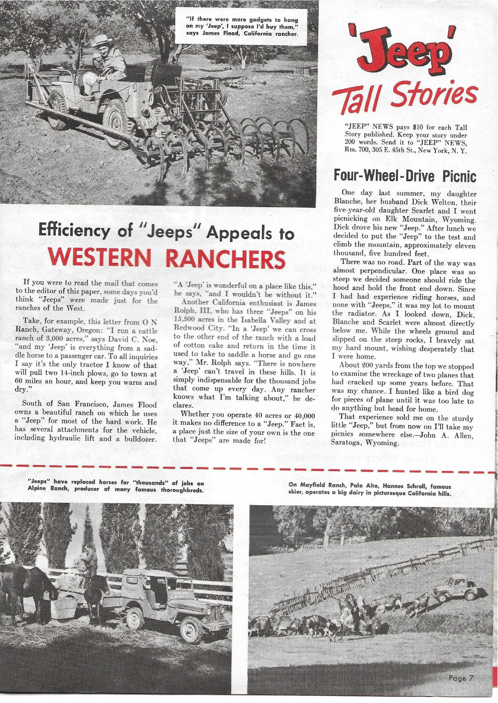 UPDATE: Thanks to Jan for pointing out that on page 4 are two photos of a 2A with a driver’s side spare tire. That would suggest that this issue was printed later than around mid-1948. Given the Santa highlight on the cover, I’d say the Fall/Winter of 1948 prior to the introduction of the CJ-3A. If that’s the case, then maybe these came out every six months?