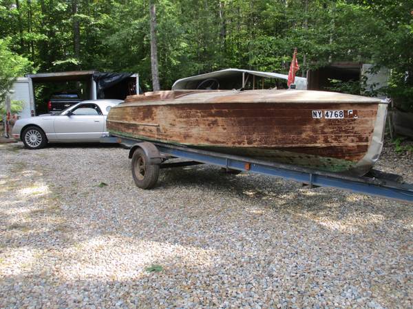 “Early 18′ Hacker design 2 cockpit aft, engine forward 4- cylinder Willys $8,500.- 1935 18′ Chris Craft model 301 split cockpit Gray Marine 4 -cylinder $4,000.- 1949 18′ Ventnor with Chrysler 6 -cylinder. $1,500.- Hacker and Chris are in N.H the Ventnor is in Ct.”