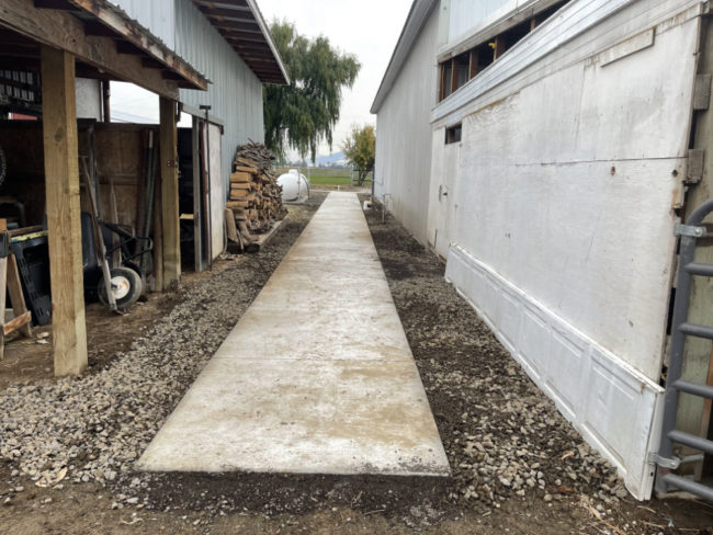 The dirt areas on either side of the walkway will become grass, but we ran out of time to complete the prep on that (may have to wait until Spring).
