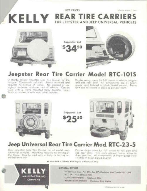 1. Con-Ferr offered various options in it’s 1970 catalog. A few of the mounts were made and sold by Con-Ferr. The pages also include a Bestop Tire Mount and another example of a Kayline tire mount: