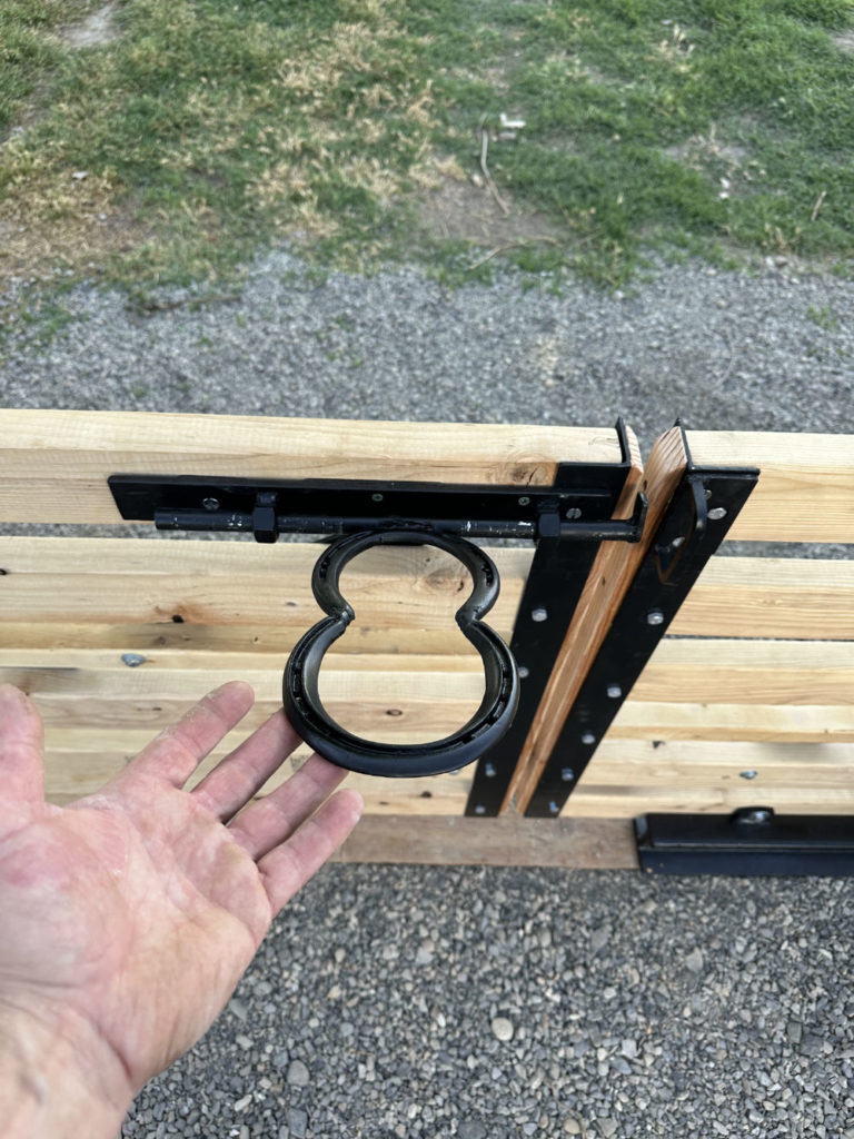 The latch design is based on a similar design on another gate. The paint will scratch on the slider, but we aren’t all that worried about it.