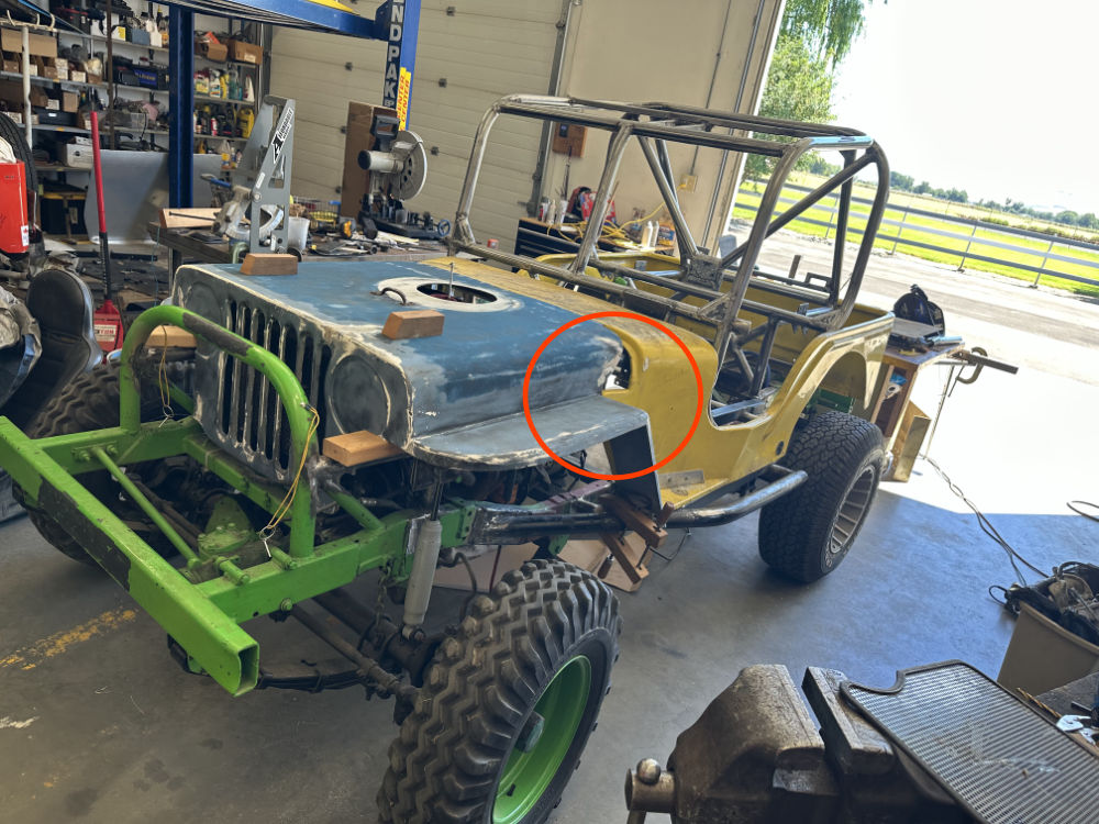 You can see part of where the hood is cut out. The form will allow for the new portion of the hood also down fender to flare outward more (or that’s the plan).