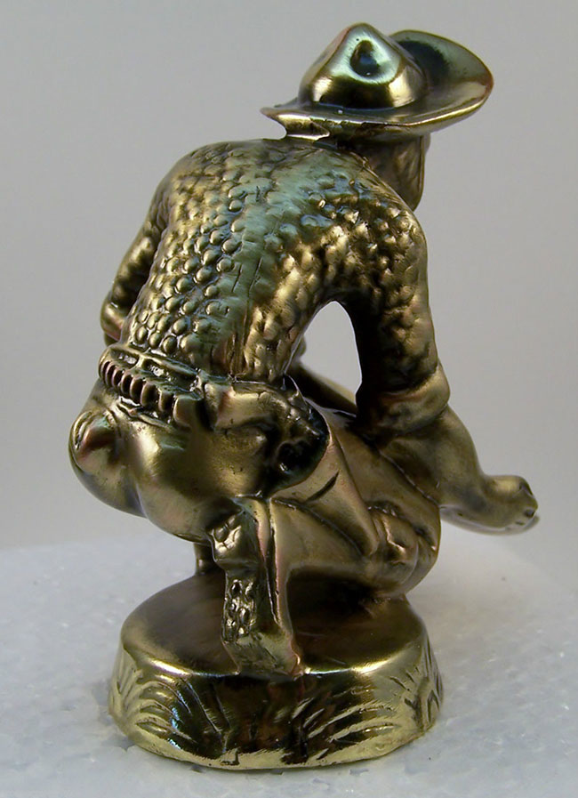 I have one that we acquired 50 years ago. It’s brass with “ALASKA” in the gold pan so it might have been a souvenir piece. It’s the prospector with the longer beard. If anyone’s interested it is available. TS, Austin, Texas