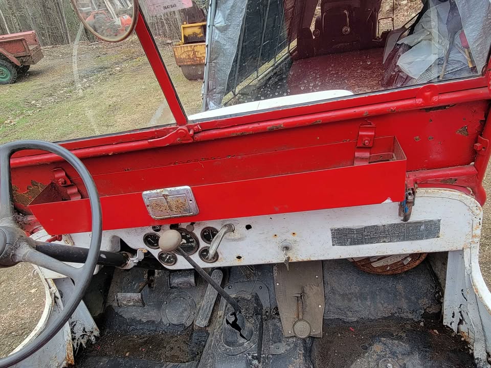 | 1948 cj2a, rebuilt the carb, put gas in, fired right up. Still need a lot (everything). Shifts thru all the gears just fine, T-works as it should. His and her seats…. If the ads up, it’s available. |