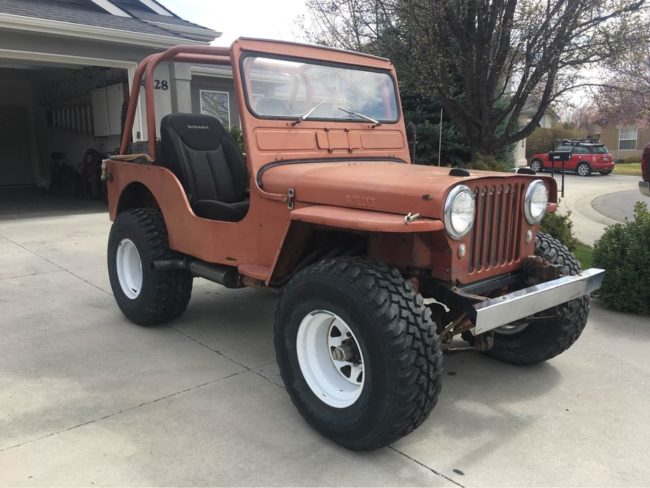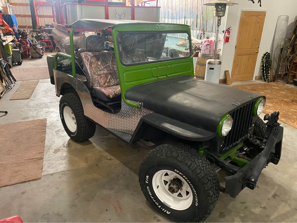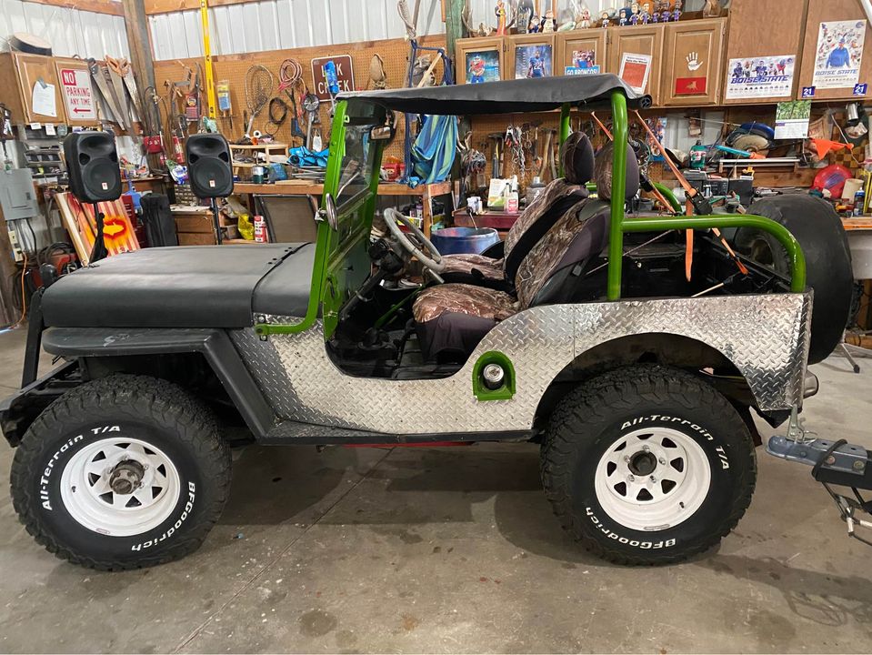 “This is my beloved 1948 CJ with a sweet homemade body made out of plate steel with the t-bucket look. It has a reproduction m38 windshield. It has the L134 with the desired kaiser SuperSonic head, t90, and dana 18. It comes on 31×10.50r15 Mastercraft mud terrain tires. This jeep gets all the attention whereever it goes. Jeep has a tabor 9k pound winch with in cab controls. The frame has been boxed. The seats are xp1000 seats out of a newer Polaris RZR. Has LED lights all the way around. Has Brennan Metcalfs tracker disc brake conversion on the front axle. This jeep is well tested on and offroad, it goes everywhere. I really hate to sell it but don’t really need 5 jeeps, and would hate to see it sit. I would like $5000”