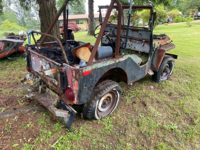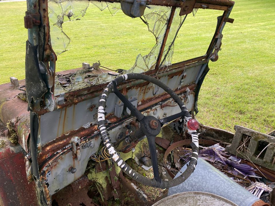 “1947 project Willy’s barn find. Rolling chassis and no numbers. Was used as a sand drag jeep in the 70s & 80s and used to have a 327 corvette engine.”
