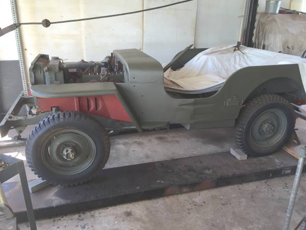 (08/23/2015) “This 1940’s MB Willy’s jeep with a 1949 front clip and over head cam 4 cyclinder, runs great, clean title neefs minor work to get back on the road. Asking 3,600 please call or text to the number listed anytime.”