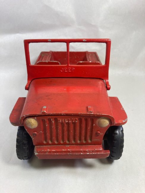 This would be ideal in a restaurant, office, or museum. We decided to restore it as if it were to be for display and not for drive ability. Everything is still as it was when it was running and driving. While my neighbor was tiny when she drove it with the intent to drive around in parades next to her dad in the full-size Jeep. I would be reluctant to make it operational due to its antique nature. When she was younger she and all the neighbor kids what get together every Sunday and ride in it at 5 mph all day long so it has 141 miles on the odometer. it is 66 inches long by 33 inches wide sitting on 15 inch fire stone tires. while I would prefer cash I would consider trading it for”