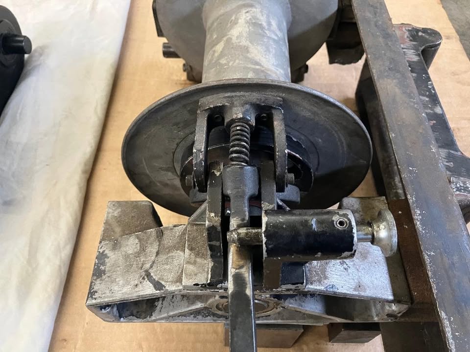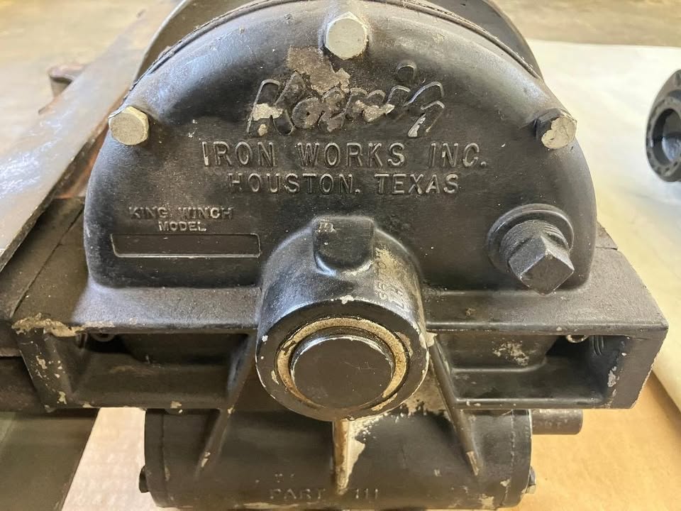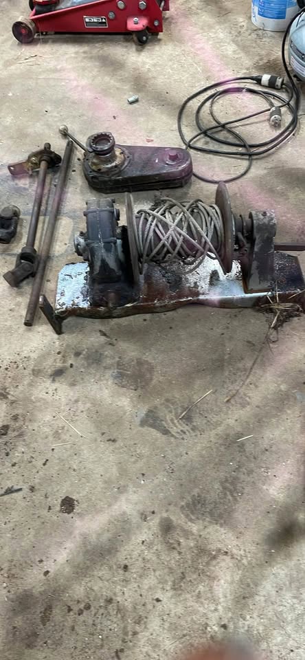 General Electric, 200 amp welder and 110 generator comes with the base piece that bolts in the Welder then bolts to the base the PTO goes in. It’s belt driven. Good shape for its age. It was in a 1949 Willys. CJ 3A. Turns over fine and the PTO also turns over engages and disengages.