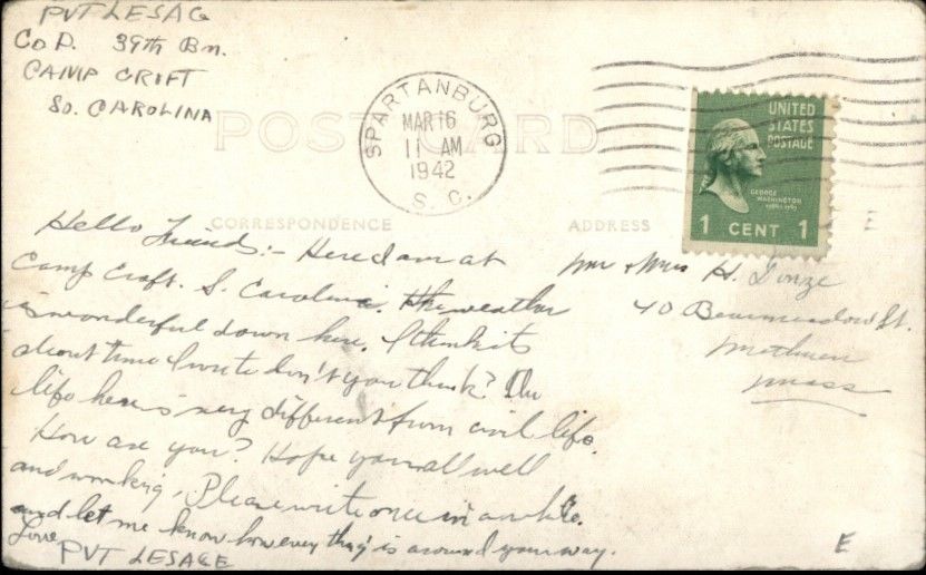 “VINTAGE POSTCARD – CONDITION: VG/some corner wear *SEE SCANS BELOW OF BOTH SIDES. DATE/ERA: c1940s. Standard Size 3.5×5.5 Inches.”