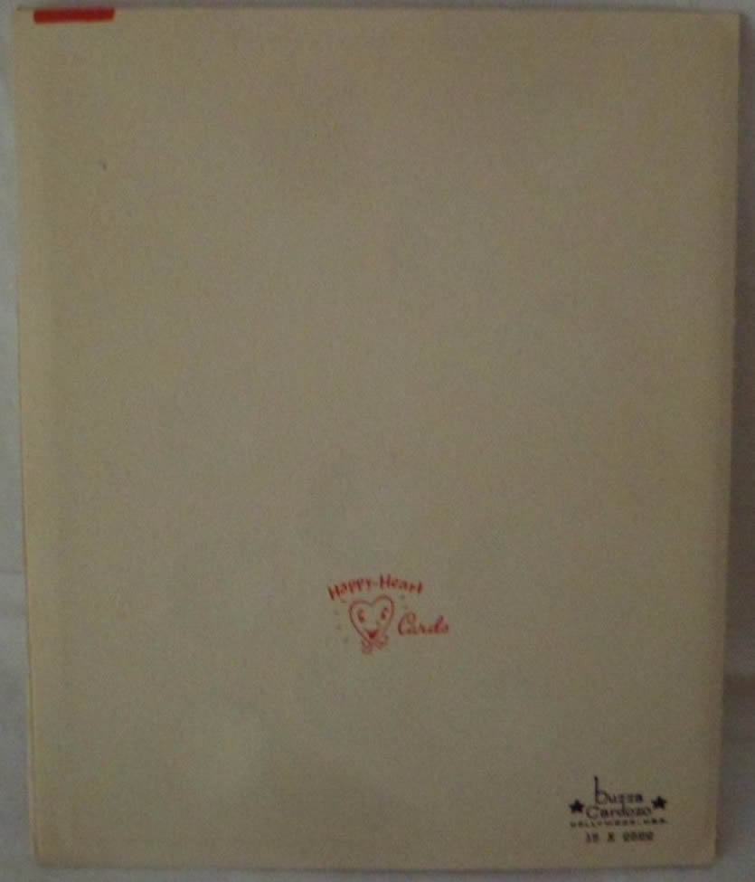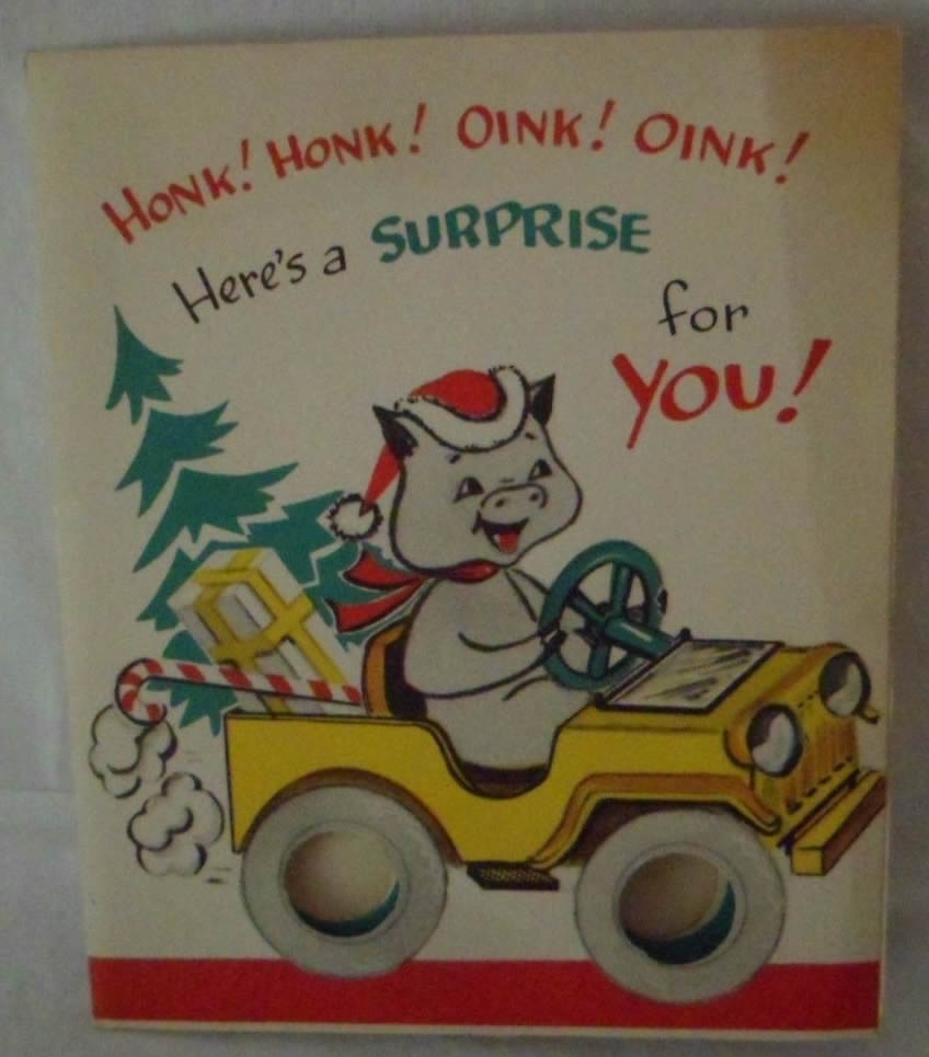 “This vintage Christmas greeting card is unused with no envelope. Has line of discoloration on front from age and storage. 4 3/8 x 5 3/8″.”